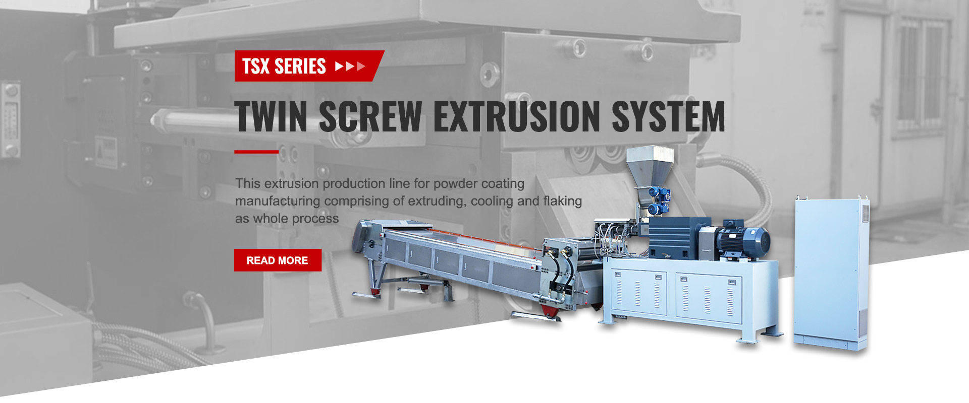 Leer másLa producción de recubrimientos en polvo es un procesamiento múltiple de pintura en polvo, según la fórmula de recubrimiento en polvo, desde el pesaje y la mezcla como proceso semicontinuo hasta el enfriamiento por extrusión y la formación de escamas, molienda y tamizado hasta obtener el polvo terminado como proceso continuo completo, durante este proceso, la línea de producción compuesto por mezclador de contenedores, extrusora de doble tornillo,cinta de enfriamiento con triturador de escamas, molino clasificador de aire con tamiz.