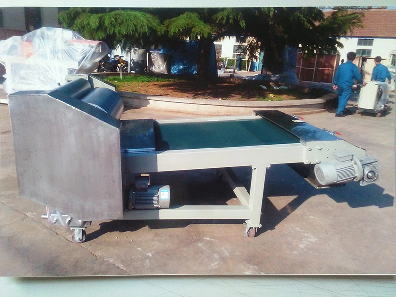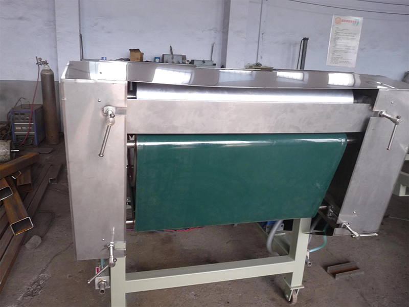 (2) Para garantizar la seguridad de los operadores, la máquina adopta la cubierta protectora de circuito cerrado, es decir, la posición de rotación de los rodillos y la posición de trituración están protegidas por una placa de acero inoxidable como cubierta de seguridad, la cinta transportadora tipo oruga es lo mismo que se mencionó anteriormente y mantenga el orificio de vidrio orgánico, desde este orificio puede ver el estado de los materiales en escamas y ajustar el estado de compresión. En la puerta de encendido / apagado de la cubierta protectora del rodillo, se instala el interruptor de tipo de ruptura forzada y está conectado con el relé de seguridad I dentro del gabinete de control eléctrico, si se abre la puerta de la cubierta protectora del rodillo, se apagará instantáneamente para proteger la seguridad de los operadores. En la posición de encendido / apagado de la cubierta de ruptura, el interruptor de ruptura forzada también está instalado, está conectado con el relé de seguridad II dentro del gabinete de control, si se abre la cubierta protectora de ruptura, se cortará la energía instantáneamente, el interruptor detendrá la operación para garantizar la seguridad de los operadores. Con respecto a este punto, comuníqueselo bien a los usuarios.